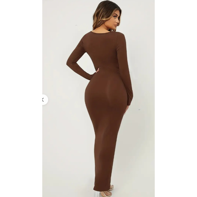 Vestido Longo Justo Suplex Manga Longa com Decote Quadrado Kardashians – Look Sexy e Confortável