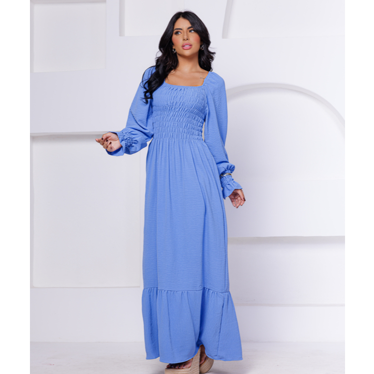 Vestido Longo Luxo Tecido Duna Manga Longa Várias Maneiras de usá-lo você pode usá-lo normalmente ou com ombro a ombra