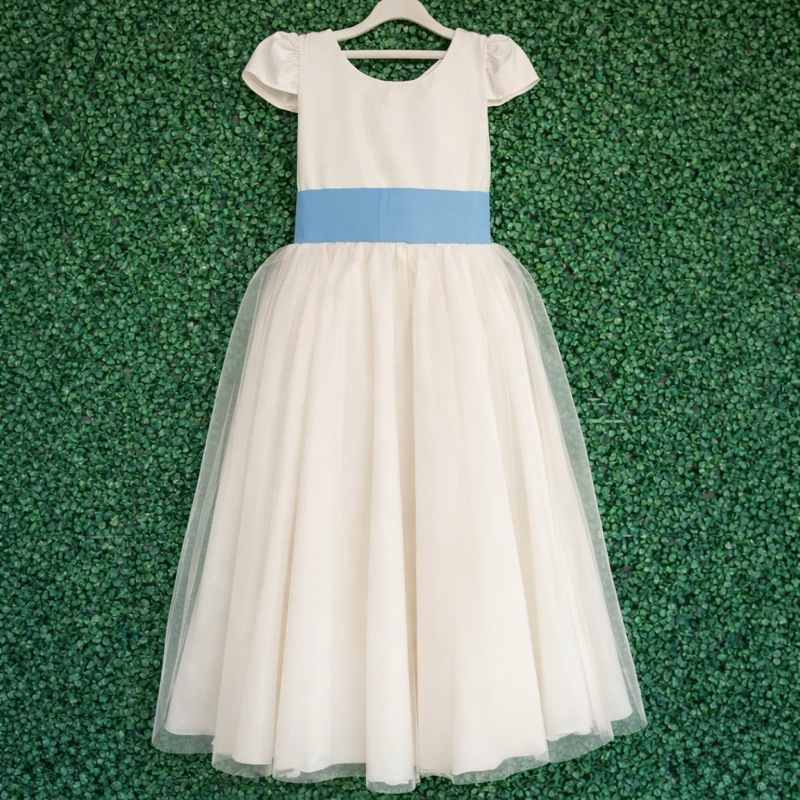 Vestido Longo OFF WHITE juvenil 36 A 42 em 25 cores de faixa Dama de honra florista ref4166