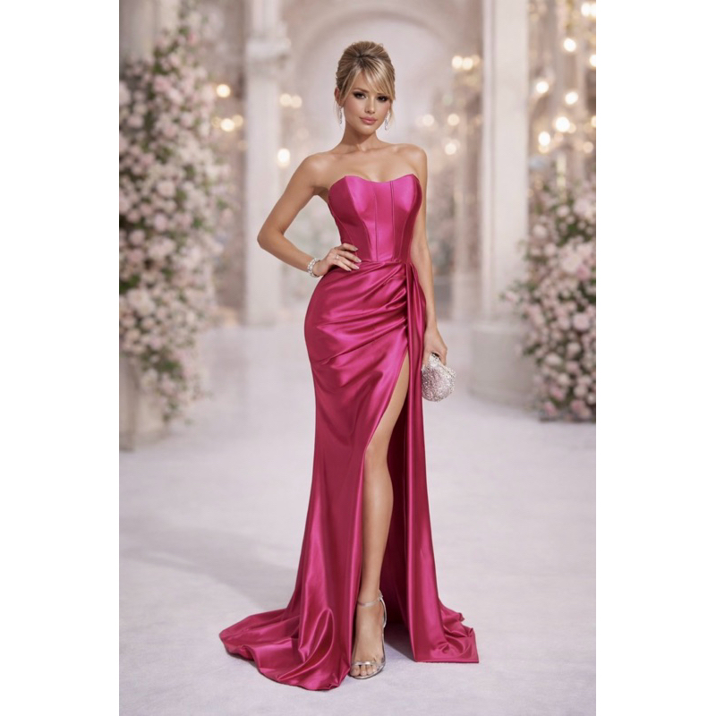 Vestido Longo para madrinha Acetinado Tomara que Caia com Fenda – Festas luxo