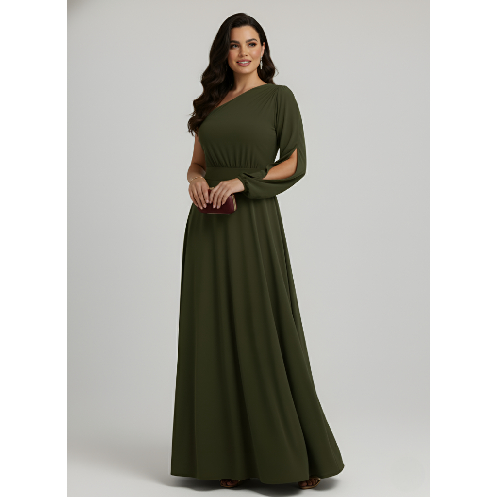 Vestido Longo para Madrinha de Casamento com Manga Festa Formatura Luxo