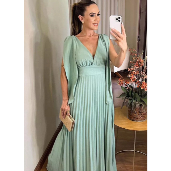 Vestido Longo Plisado Decote V Vestido Para Madrina de Casamento Festas Formatura