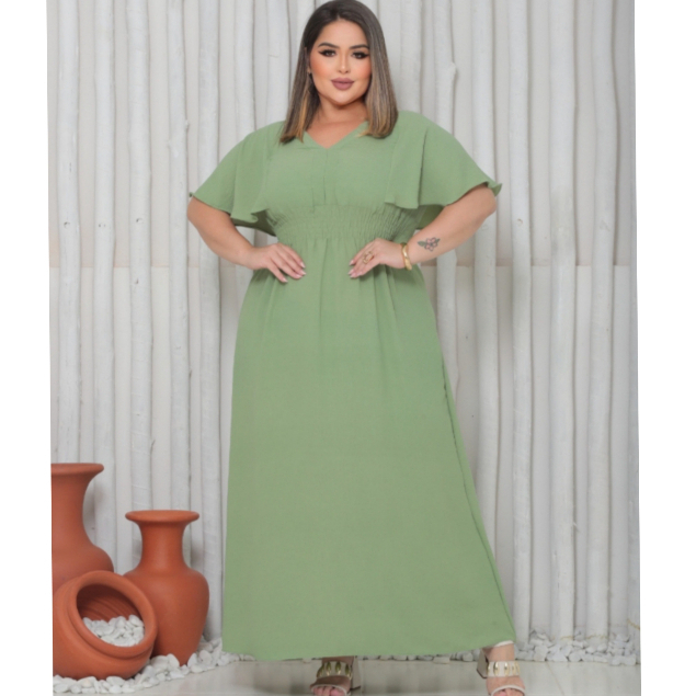 VESTIDO LONGO PLUS SIZE Transforme seu guarda-roupa com este elegante vestido MORCEGO, GOLA V ELASTEX NA CINTURA QUE AJUSTA PERFEITO AO CORPO, longo plus size, desenhado para realçar sua beleza e oferecer um ajuste perfeito e confortável. Ideal para ocasiões especiais casamentos, festas, ou para eventos formais, este vestido combina estilo sofisticado com um caimento impecável.