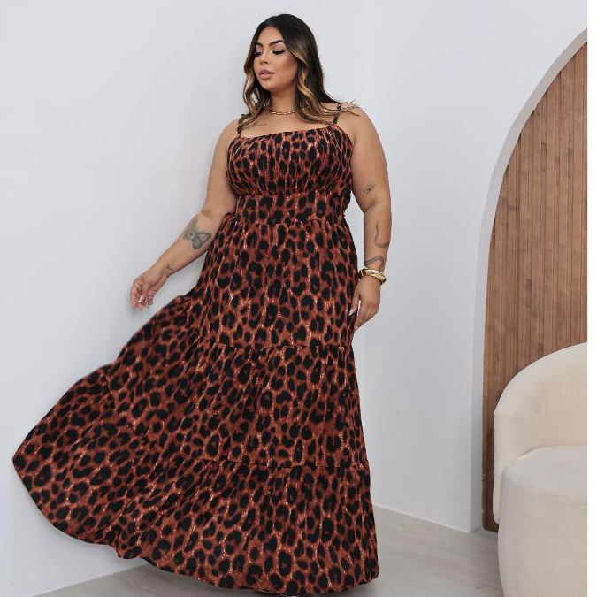VESTIDO LONGO PLUS ONCA TECIDO DUNA CARACTERISTICAS G1 G2 has medidas podem bariar 5cm para mais ho para menos