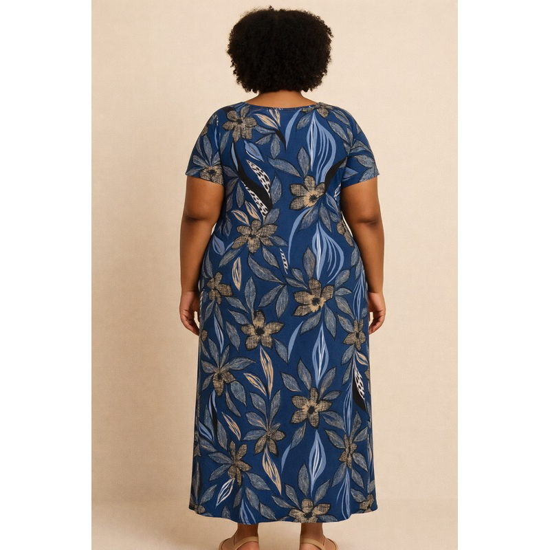 Vestido Longo Plus Size Estampado em Malha Fria – Confortável