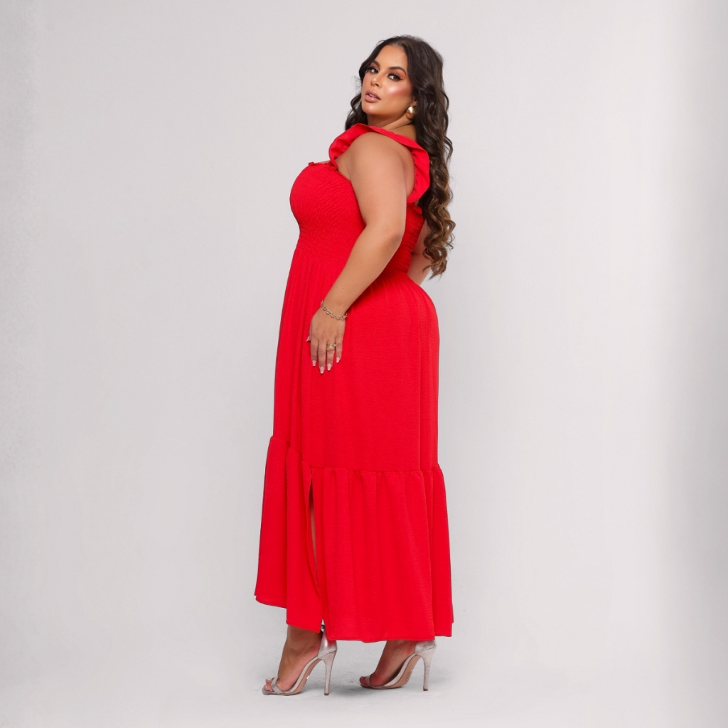 Vestido Longo Plus Size Feminino Com Silhueta Solta E Fenda