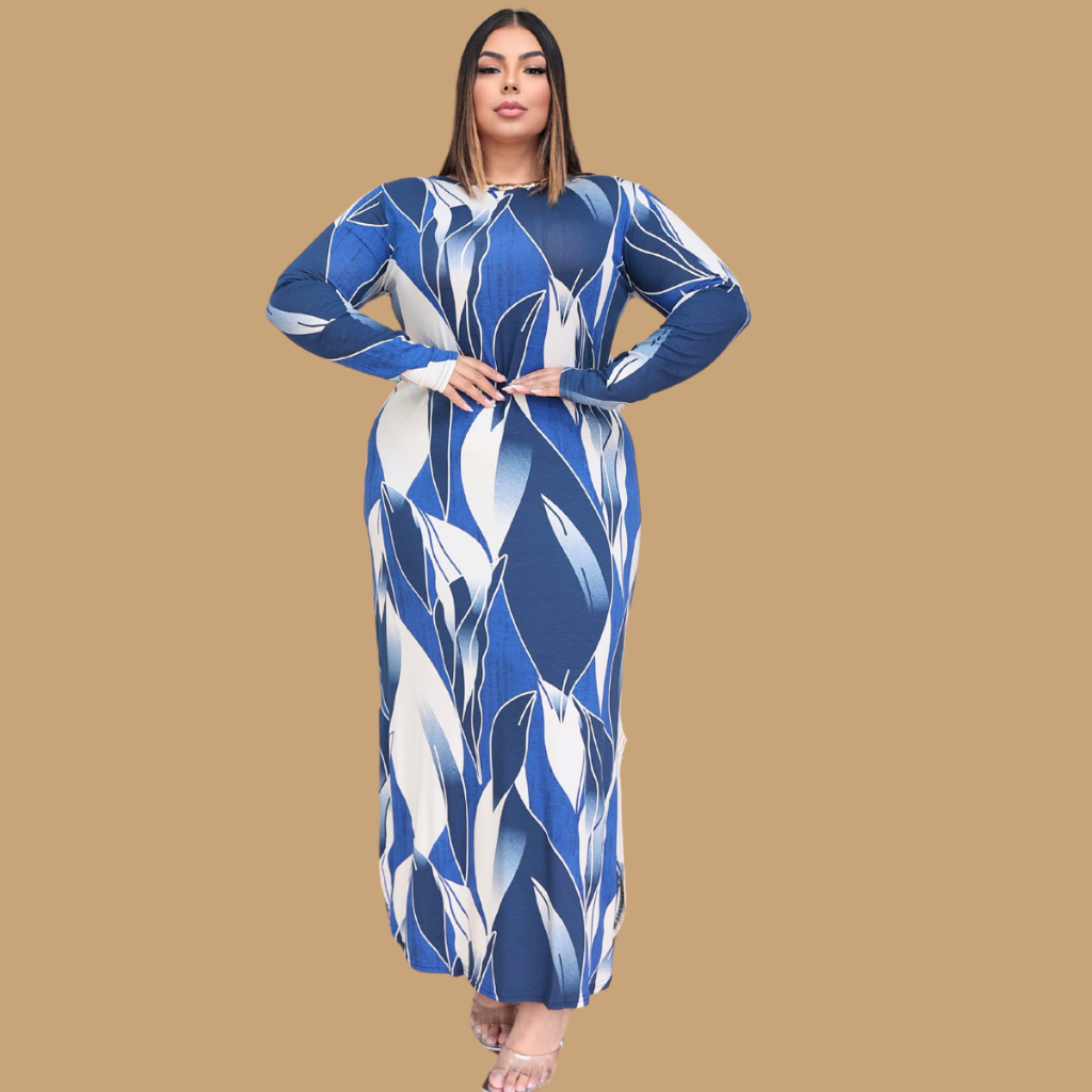Vestido longo Plus Size Manga Longa com Fenda inverno vestidos evangélicos moda evangélica frio