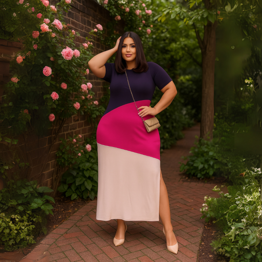 Vestido Longo Plus Size Midi Evangélico com Fenda e Manga – Tamanhos 46 ao 48