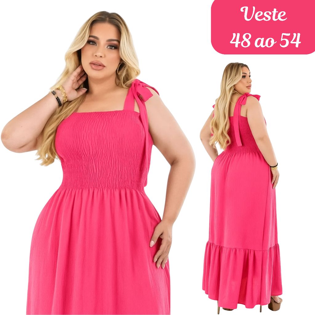 ✨ Vestido Modelo Lis — Elegância que abraça suas curvas! ✨ O Vestido Modelo Laura da Miss Moda Plus Size é aquele longo sofisticado e versátil que veste do G ao G1, com alças e corpo em lastex que se ajustam perfeitamente ao seu corpo! 💃💕 Confeccionado em crepe dunas, ele é leve, fresco e traz aquele toque fino que vai do look casual ao mais elegante! 🌷✨ Disponível em várias cores lindas pra combinar com seu estilo! 🎨💖 💁♀️ Dica: Combine com acessórios poderosos e esteja pronta pra receber elogios! 😉✨ 🛍️ Realce sua beleza todos os dias! 💖