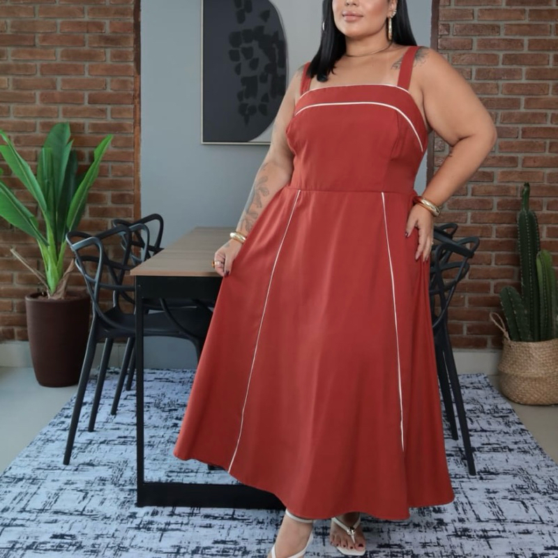 Vestido longo plus size vintage alfaiataria G2 G3 Estela