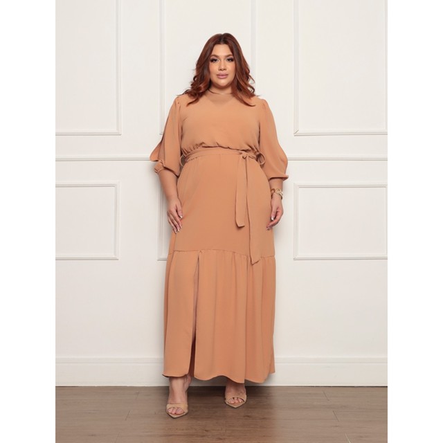 | Vestido Longo Social Plus Size Manga 3/4 com Fenda Tecido Duna Eleg... este produto | R$ 78,90 | 40% | 4.9/5 | 66 |