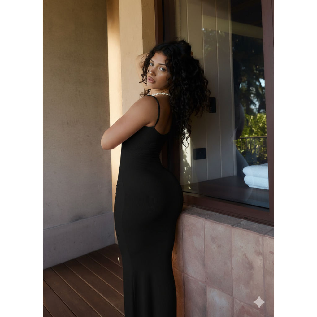 Vestido Longo Suplex Feminino Colado Alta Elasticidade Modelador Não Marca Alcinha Moda Festa