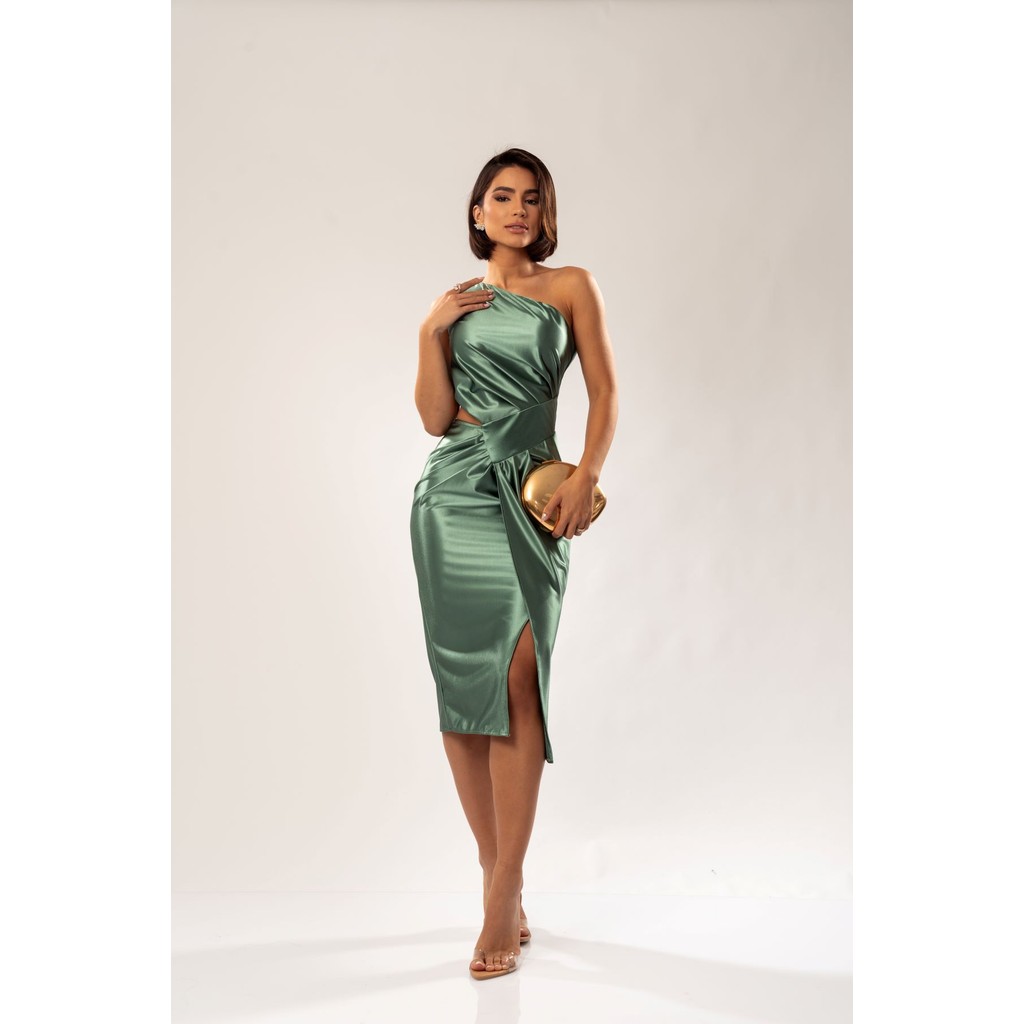 Vestido Lucia Midi Manga Única – Sofisticação e Modernidade em Uma Só Peça ✨ O Vestido Lucia Midi é a escolha perfeita para mulheres que desejam transmitir elegância e presença em eventos formais e ocasiões especiais. Confeccionado em malha premium encorpada, oferece caimento impecável, toque macio e elasticidade ideal para valorizar a silhueta com conforto. Sua modelagem midi ajustada alonga o corpo, enquanto a manga longa única e o decote assimétrico conferem um ar moderno e sofisticado. Os drapeados estratégicos na cintura afinam a silhueta, e a fenda frontal garante sensualidade na medida certa. Perfeito para casamentos, formaturas, coquetéis e eventos noturnos, é uma peça versátil que transita do clássico ao fashion com facilidade. Para manter seu caimento e brilho, recomenda-se lavagem à mão e secagem natural. Medidas aproximadas: Tamanho P (36/38): Busto 86 cm | Cintura 66 cm | Quadril 95 cm Tamanho M (40): Busto 90 cm | Cintura 70 cm | Quadril 99 cm Tamanho G (42): Busto 94 cm | Cintura 74 cm | Quadril 103 cm