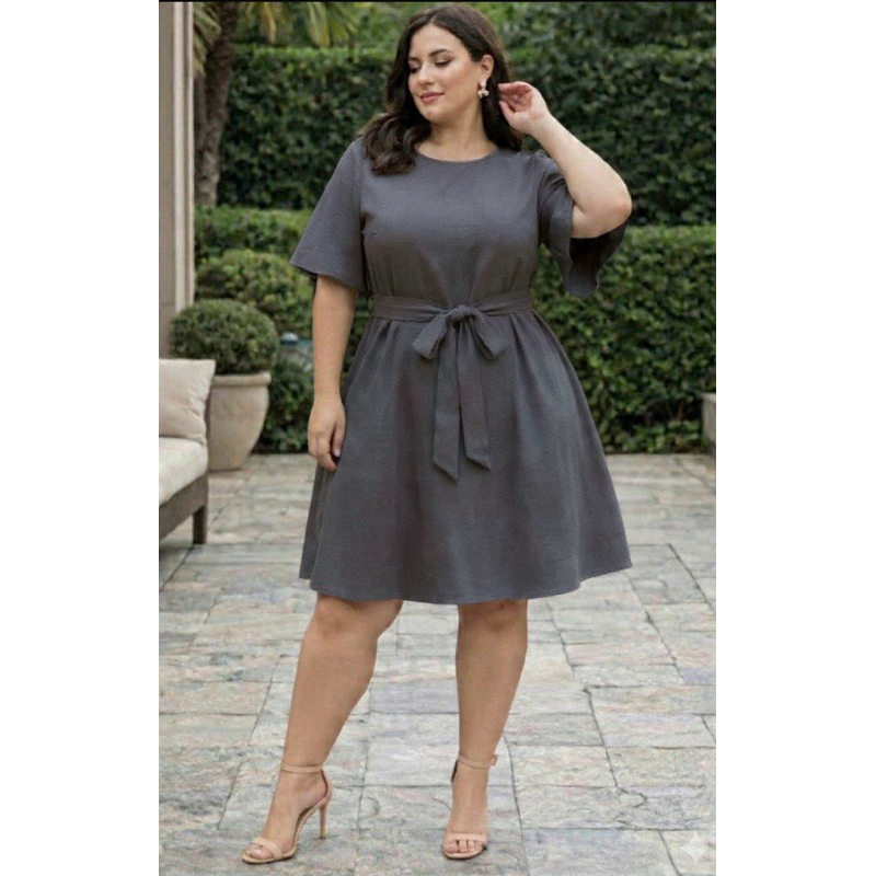 vestido manga larga saia rodada com faixa G GG G1 G2 44/46/48/50