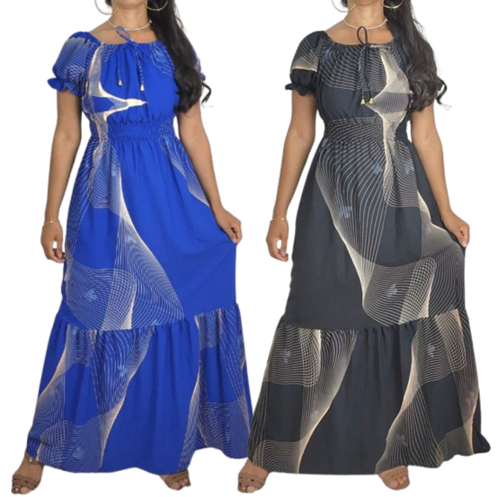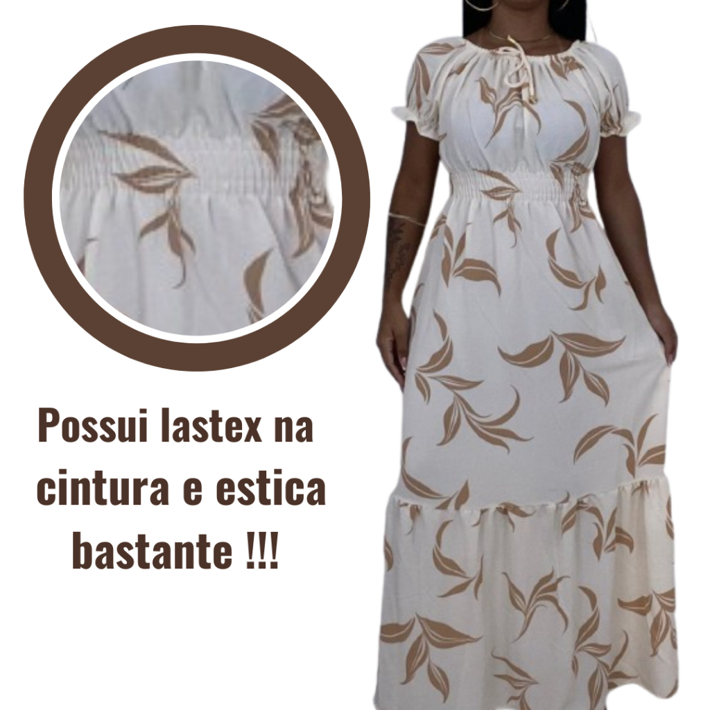 Seja bem vindo(a) á nossa loja. Estamos a mais de dois anos na shopee. oferecendo produtos de qualidade e preço acessível !!! Vestido fabricado em Crepe duna , Tecido de qualidade, além de ser leve e fresquinho, não amassa, dando praticidade para o dia a dia e ganhando tempo, já que não precisa passar !!! Modelo longo, possui babado em sua barra. Possui lastex em sua cintura que estica bastante se adequando bem ao corpo Suas mangas em modelo princesa, conferem charme e elegância á peça. Veste tamanho único do 36 ao 42. Não possui forro, pois o vestido não é transparente, e o tecido é bem encorpado. Aqui você pode escolher a estampa de sua preferência, que enviamos exatamente ela, temos todo cuidado e atenção na embalagem para evitar possíveis erros. Medidas do vestido: Altura: 1,35 CM Busto esticado: 96 CM Quadril: 105 CM Ao escolher seu produto certifique-se que estão adequadas as suas medidas A modelo do anúncio possui: 1,59 de altura e veste manequim 38. Todas as fotos e vídeos são de nossa própria autoria, assim você consegue ver á peça como ela realmente chegará á sua residência. Qualquer dúvida nos chame no chat, estamos prontos para atendê-lo (a)