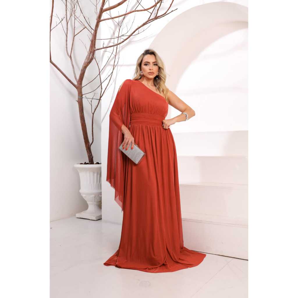 Vestido Manga Unica Longa De Tule Para Festas Corporativas e Casamentos Ombro Unico Manga Longa