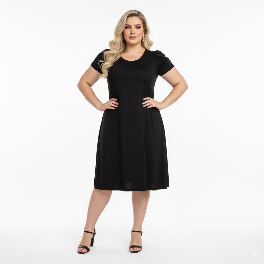 O vestido manguinha em tecido Viscolycra é uma peça encantadora que combina elegância e conforto. Confeccionado em Viscolycra, um material conhecido pela sua maciez e elasticidade, o vestido oferece uma sensação suave ao toque e se adapta harmoniosamente às curvas do corpo. Com mangas delicadas, o design proporciona um toque feminino e charmoso, conferindo uma aparência sofisticada. O modelo é versátil, ideal para diversas ocasiões, desde encontros casuais até eventos mais formais. O tamanho único do vestido é uma característica inclusiva, abrangendo até o tamanho 50. Isso garante que a peça seja adequada para uma variedade de silhuetas, promovendo conforto e confiança para mulheres de diferentes estilos e formas. A praticidade do tecido Viscolycra permite que o vestido mantenha sua forma original mesmo após várias lavagens, proporcionando durabilidade e fácil cuidado. Seja para um passeio descontraído ou uma ocasião especial, este vestido manguinha em Viscolycra é uma escolha elegante e confortável para mulheres que valorizam o equilíbrio entre estilo e bem-estar.