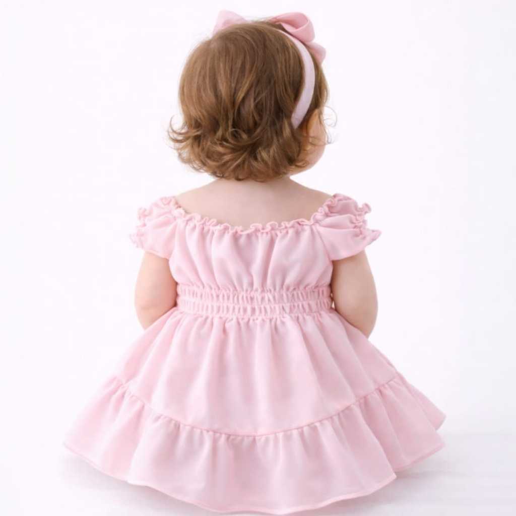 Vestido infantil para menina em tons delicados, com modelagem rodada, detalhe em laço na parte frontal e acabamento em babados. Acompanha laço em meia fina com detalhe com stras para dar charme e elegância, formando um look completo e encantador para bebês e crianças pequenas ( selecione a opção vestido + laço faixa para adquirir o kit) Ideal para: Aniversário infantil passeios Festas Ensaio fotográfico presente para bebê Confortável leve e com ótimo caimento. Perfeito para quem busca um vestido infantil bonito, delicado e prático para o dia a dia ou ocasões especiais Guia de Tamanhos (Medidas em cm): Comprimento 44 cm Busto 20 cm Cintura estica bem chegando a 30 cm Tamanho único vestindo bebe 10 a 18 meses. 📌 Observação: As medidas podem variar em até 2 cm devido ao processo de confecção.