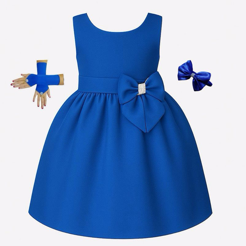 Vestido Meninas Infantil Festa Casual Liso Varias Cores Com Luva e Tiara