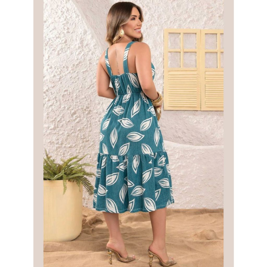 DESCRIÇÃO DO PRODUTO (OTIMIZADA PARA VENDAS) Vestido midi feminino confeccionado em malha com bastante elastano , oferecendo conforto extremo, ótimo caimento e liberdade de movimento. Possui alças largas, que garantem melhor sustentação, decote reto elegante e modelagem soltinha, que valoriza o corpo sem marcar Não marca Não fica transparente Não amassa com facilidade FICHA TÉCNICA (PARA ANÚNCIO) Modelo: Vestido Midi Feminino Alças: Larga Comprimento: Midi Decote: Reto Estampa: Folhagem Tecido: Malha Elasticidade: Alta (com bastante elastano) Caimento: Solto / confortável Forro: Não possui Transparência: Não Fechamento: Não possui Estilo: Casual / Elegante TABELA DE MEDIDAS – VESTIDO MIDI ESTAMPADO Modelagem: Pequena (Confira as medidas antes de finalizar a compra) Tamanhos disponíveis: M (38/40) Busto: 84 cm Cintura: 75 cm Quadril: 120 cm G (42) Busto: 90 cm Cintura: 80 cm Quadril: 130 cm GG (44) Busto: 100 cm Cintura: 85 cm Quadril: 135 cm Indicação: Uso diário, passeios, trabalho informal INFORMAÇÕES IMPORTANTES: ✔ Medidas feitas com a peça fora do corpo ✔ Pode ocorrer variação de 1 a 2 cm ✔ Modelo com modelagem pequena ✔ Em caso de dúvida entre dois tamanhos, escolha o maior ✔ Corte soltinho no quadril, proporcionando conforto