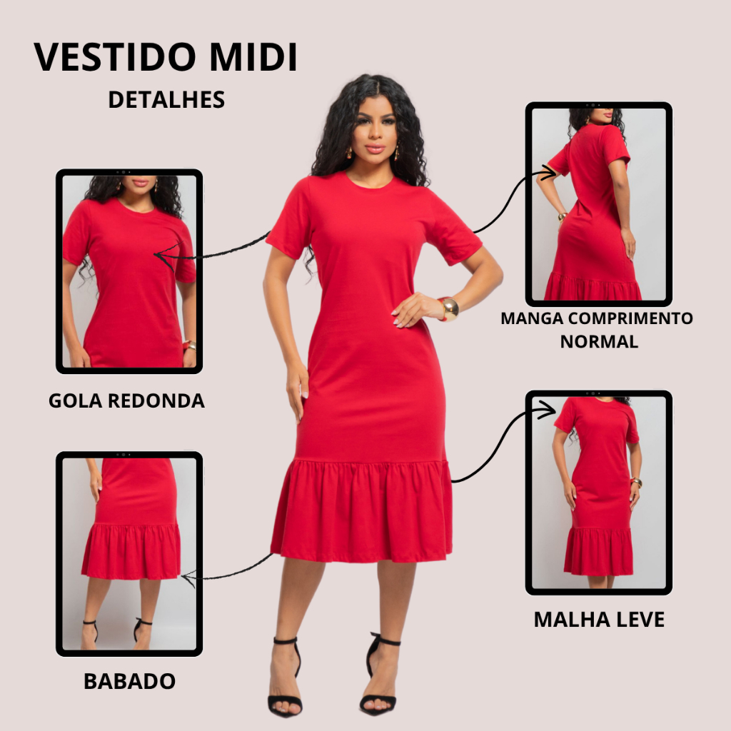 Vestido Mídi com Babado feminino – 100% Algodão Conforto, estilo e qualidade em uma só peça! 📏 Disponível nos tamanhos: P – veste 36/38 M – veste 40/42 G – veste 44 GG – veste 46 Esse vestido mídi com babado é feito em malha 100% algodão de alta qualidade, proporcionando um caimento leve, toque macio e respirabilidade ideal para os dias mais quentes. A modelagem valoriza o corpo com elegância, enquanto o babado dá um charme especial, tornando-o perfeito para compor looks casuais ou mais arrumados com apenas alguns acessórios. 💡 Benefícios do produto: ✔ Tecido natural que permite a pele respirar ✔ Caimento confortável que não marca o corpo ✔ Versátil: use com tênis, rasteirinha ou salto ✔ Ótima durabilidade mesmo após várias lavagens Garanta o seu vestido midi babado feminino 100% algodão premium casual
