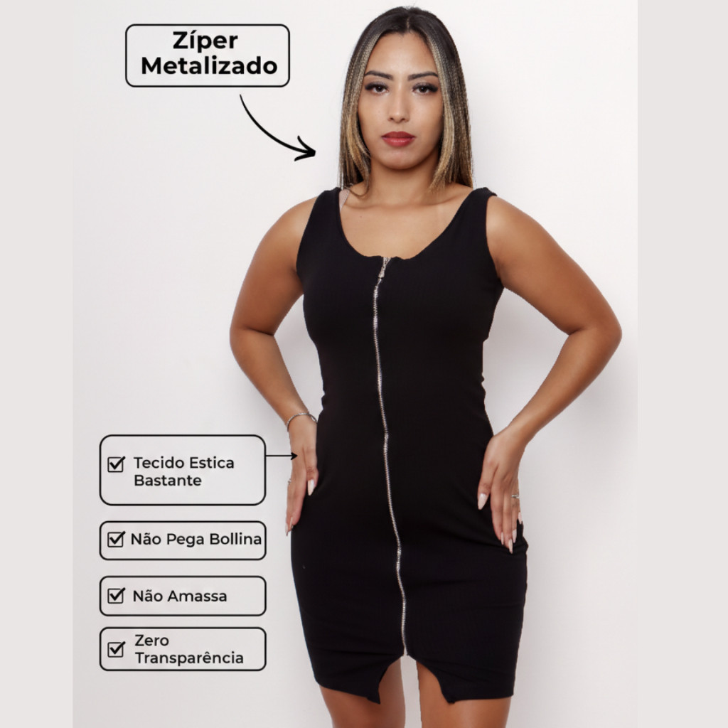 Vestido Midi Canelado 3 em 1 Regata Tubinho com Ziper Prata