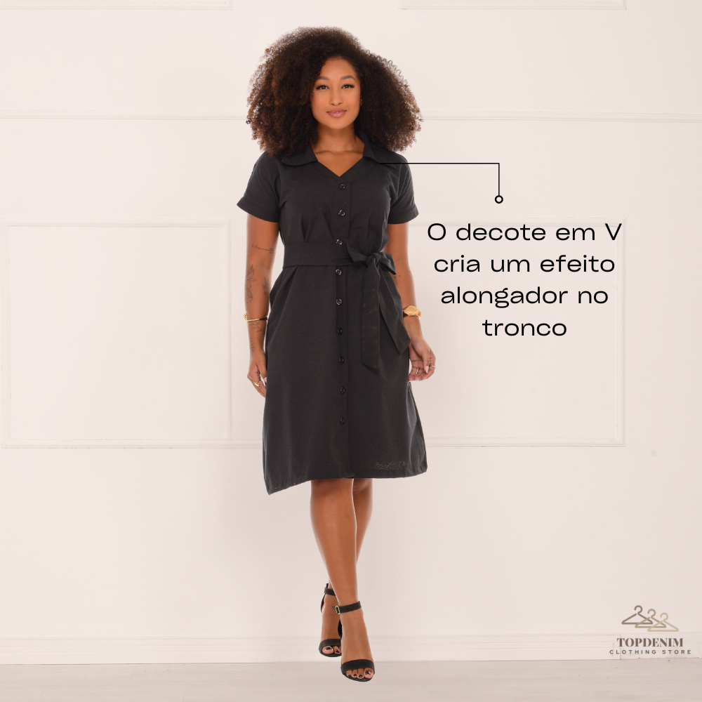 Este vestido apresenta um design clássico e elegante, com linhas limpas que valorizam a silhueta sem abrir mão do conforto. A modelagem é reto-acinturada, estruturada para oferecer caimento leve e harmonioso. Na parte superior, o vestido traz uma gola social com pontas delicadas 👗, adicionando um toque sofisticado ao visual. O decote em V suave, combinado com a abertura frontal completa, cria um efeito alongador no tronco. Toda a frente é fechada por uma fileira de botões alinhados ⚜️, que percorrem a peça do busto até a barra, reforçando a estética atemporal. As mangas curtas possuem barra dobrada, garantindo um acabamento elegante e refinado. A cintura é realçada por uma faixa do mesmo tecido, com passantes discretos, pensada para amarração frontal ou lateral 🎀 — permitindo ajustar a peça ao corpo e trazer definição com suavidade. A saia possui comprimento na altura dos joelhos, com caimento solto e natural, acompanhando o movimento do corpo com leveza. O tecido apresenta textura sutil, conferindo charme e modernidade ao visual. 📌 Especificações do Produto: 🏷️Referência: 18278 🧵 Composição do Tecido: 55% Algodão | 45% Poliéster 📏 Grade de Tamanhos: P ao GG 👗 Modelagem: Reto-acinturada 👔 Gola: Social estruturada ✨ Decote: V suave 🔘 Fechamento: Botões frontais 📏 TABELA DE MEDIDAS (circunferência) Tamanho P Busto: 100 cm Cintura: 104 cm Quadril: 112 cm Manga: 29 cm Comprimento: 101 cm Tamanho M Busto: 106 cm Cintura: 112 cm Quadril: 116 cm Manga: 30 cm Comprimento: 102 cm Tamanho G Busto: 112 cm Cintura: 120 cm Quadril: 120 cm Manga: 31 cm Comprimento: 103 cm Tamanho GG Busto: 118 cm Cintura: 128 cm Quadril: 124 cm Manga: 32 cm Comprimento: 104 cm 🧼 Cuidados com a Peça • Lavar à mão ou no ciclo delicado • Secar à sombra • Não usar alvejante • Passar em temperatura baixa 🏭 Fabricação Própria📦 Pronta Entrega⚡ Envio Imediato Tags 💖