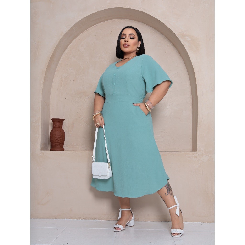 068 Vestido Mídi Com Botão no Busto e Bolsos Funcionais, Plus Size – Elegância e Conforto! *TECIDO DUNAS LISO *NÃO AMASSA *POSSUI ELASTEX NA PARTE DAS COSTAS *TEM FORRO NA SAIA MEDIDAS DA PEÇA EM CENTIMETROS EN CIRCONFERENCIA DO CORPO!!! G1, G2, G3 G1 BUSTO 120 CM CINTURA NAO ESTICAD 96 CM CINTURA ESTICADA QUADRIL 120CM COMPREMENTO 123 CM G2 BUSTO 124 CM CINTURA NAO ESTICAD 100 CM CINTURA ESTICADA QUADRIL 130 CM COMPREMENTO 1124 CM G3 BUSTO 130 CM CINTURA NAO ESTICAD 104 CM CINTURA ESTICADA QUADRIL 140 CM COMPREMENTO 125 CM • RECOMENDAÇÃO DE USO: ° Usar sabão neutro. ° Secar na sombra. Descubra o Vestido Mídi Duna Liso Plus Size, perfeito para quem busca estilo e conforto. Com mangas amplas e lastex nas costas, ele se ajusta ao seu corpo, garantindo liberdade de movimento e um caimento impecável. O tecido 100% Poliéster de alta qualidade, com toque suave e durabilidade, oferece um visual elegante e versátil. Disponível nas cores: Verde Musgo, Azul Marinho, Verde Menta e Vinho, você pode escolher a que mais combina com seu estilo. Disponível nos tamanhos G1, G2 e G3, esse vestido é ideal para qualquer ocasião, do dia a dia a eventos especiais. Aposte em uma peça confortável e sofisticada, feita para realçar sua beleza! Garanta o seu e sinta-se confiante e linda!