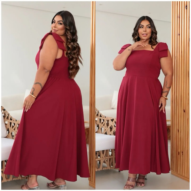 Vestido MIDI elegante con duas alças PLUS SIZE para qualquer ocaçao