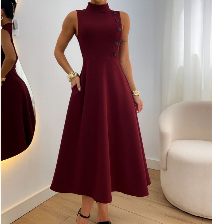 [19:32, 20/09/2025] Jacob: "Vestido Midi Elegante Sem Manga Feminino 2025 – Gola Alta, Botões Decorativos, Clássico para Festa e Trabalho" [19:42, 20/09/2025] Jacob: Descubra a sofisticação do Vestido Midi em Alfaiataria Premium, ideal para ocasiões elegantes e modernas. Com design clássico e corte impecável em forma A, este modelo valoriza a silhueta feminina com muito estilo. 🔹 Detalhes do modelo: Tecido alfaiataria premium de alta qualidade, com caimento estruturado. Modelagem midi em A, soltinha a partir da cintura. Sem mangas, perfeito para dias mais quentes ou para usar com sobreposições. Gola alta elegante que alonga a silhueta. Botões frontais decorativos que trazem charme sofisticado. Busto forrado para maior conforto. Fechamento em zíper nas costas, garantindo praticidade e melhor ajuste. ✨ Ideal para festas, eventos, trabalho, reuniões, jantares e ocasiões especiais. 📏 Tabela de Tamanhos (medidas aproximadas em cm) P (36/38): Altura 128 cm | Busto 88 cm | Cintura 70 cm M (38/40): Altura 130 cm | Busto 92 cm | Cintura 74 cm G (40/42): Altura 132cm | Busto 96 cm | Cintura 78 cm GG (42/44): Altura 134 cm | Busto 100 cm | Cintura 82 cm 🌸 Destaques ✔ Vestido midi clássico e moderno ✔ Tecido de alfaiataria premium ✔ Modelagem que valoriza o corpo ✔ Perfeito para diversas ocasiões