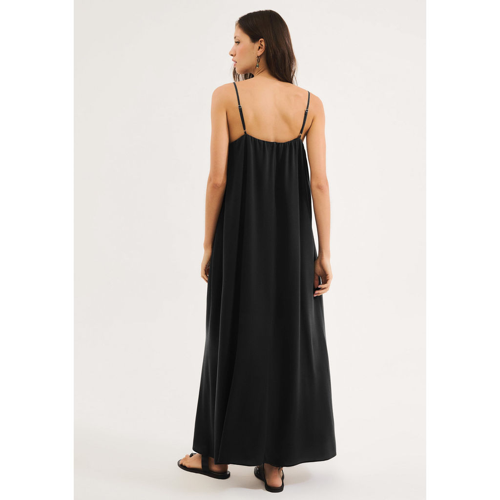 CÁPSULA BOSSA: O melhor dos novos básicos para presentear neste Natal. Os favoritos em malharia premium contam com design minimalista e caimento impecável. Padronagens atemporais, dão vida para os essenciais do guarda-roupa. Conheça a coleção completa e surpreenda.Vestido midi em tecido creponado, com alças finas reguláveis e decote arredondado com delicado franzido. Possui forro embutido e shape evasê que garante caimento fluído e elegante. Perfeito para compor produções leves e sofisticadas.Detalhes da peça:Tecido creponadoModelagem evasêComprimento midiAlças finasDecote redondo