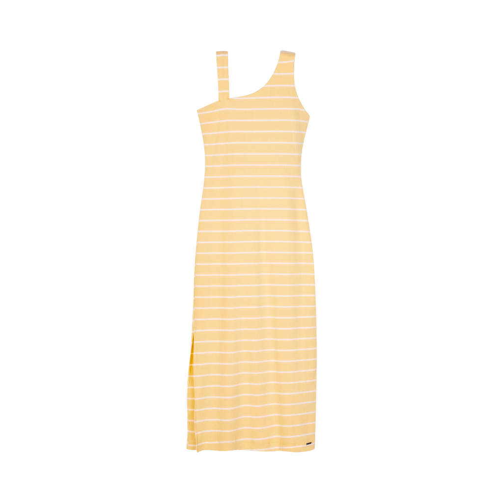 Vestido Midi Feminino Canelado Listrado Marialícia Amarelo