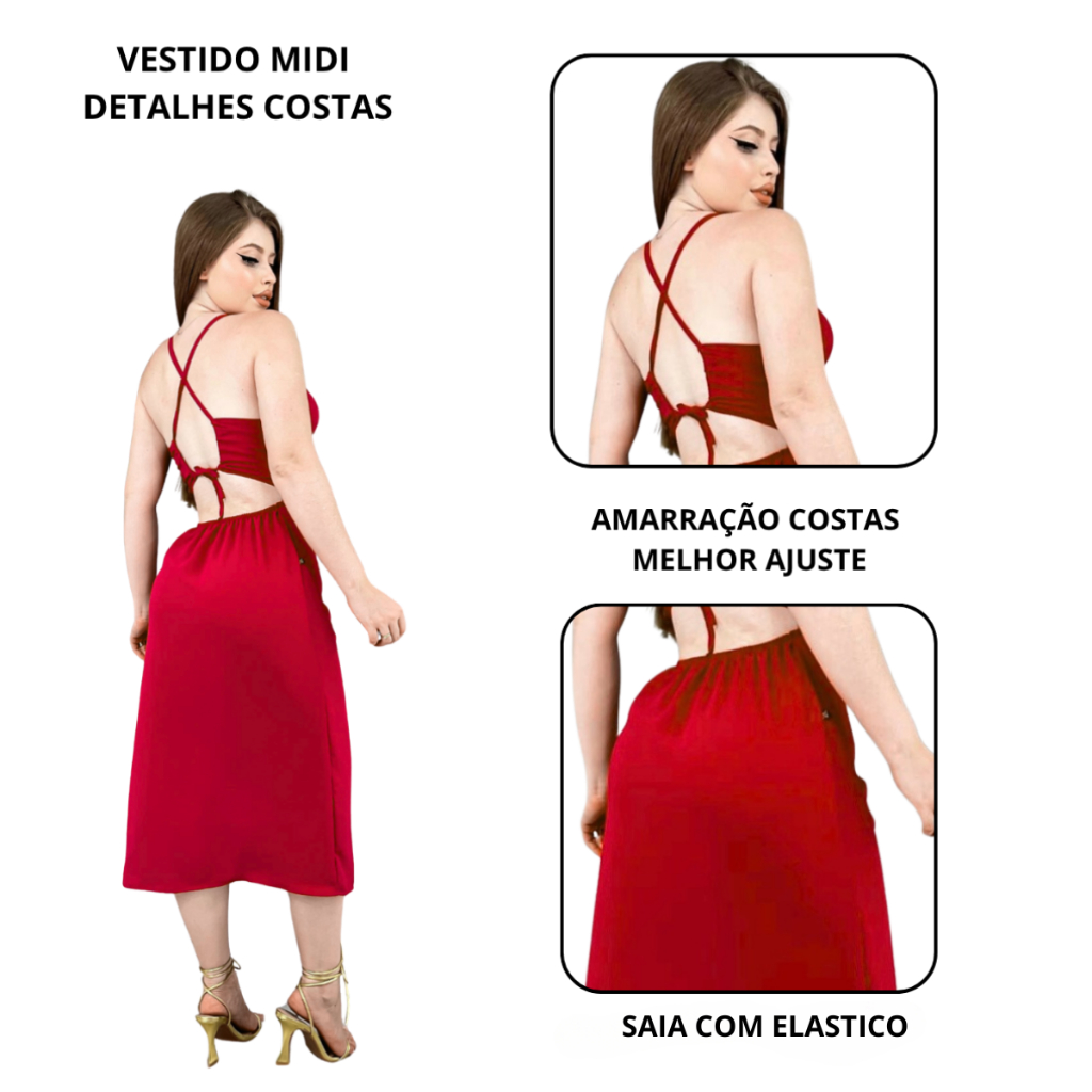 VESTIDO MIDI FEMININO DUNAS FENDA LATERAL COSTAS ABERTAS ELEGANTE FESTA E SENSUAL Se você procura um vestido que une sofisticação, elegância e um toque de sensualidade, esse modelo é perfeito para Você! Confeccionado no tecido Dunas, conhecido pelo toque macio, caimento impecável e leve elasticidade que se ajusta ao corpo. O vestido tem comprimento mídi, alças finas, decote levemente drapeado e detalhe franzido na lateral que valoriza muito a cintura. A fenda lateral poderosa traz charme, movimento e um toque sexy, enquanto as costas abertas com amarração cruzada deixam o visual ainda mais sofisticado e estiloso. Perfeito para diversas ocasiões: festas, jantares, baladas, eventos, formaturas, encontros ou aquele momento especial que pede um look impactante! *Saia com elástico costas *Não possui bojo *Atenção! Antes de finalizar a compra, consulte nossa tabela de medidas para garantir o caimento perfeito. Cada peça é única, e a tabela te ajuda a escolher o tamanho ideal para você. Tamanhos M e G M veste do 38 ao 42 G veste do 44 ao 46 GG veste do 48 ao 50 Cores podem variar de acordo com cada dispositivo! PRODUTO DE CONFECÇÃO PROPRIA Gostou? Então aproveite e garanta já seu Vestido Dunas Fenda, envio rápido e qualidade garantida!