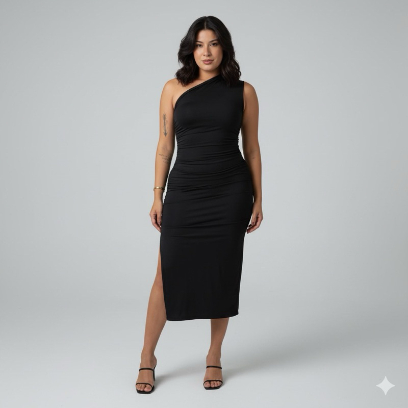 Vestido Midi Fenda Tubinho Mula Manca Suplex Elegante Nula Manca Feminino Casual