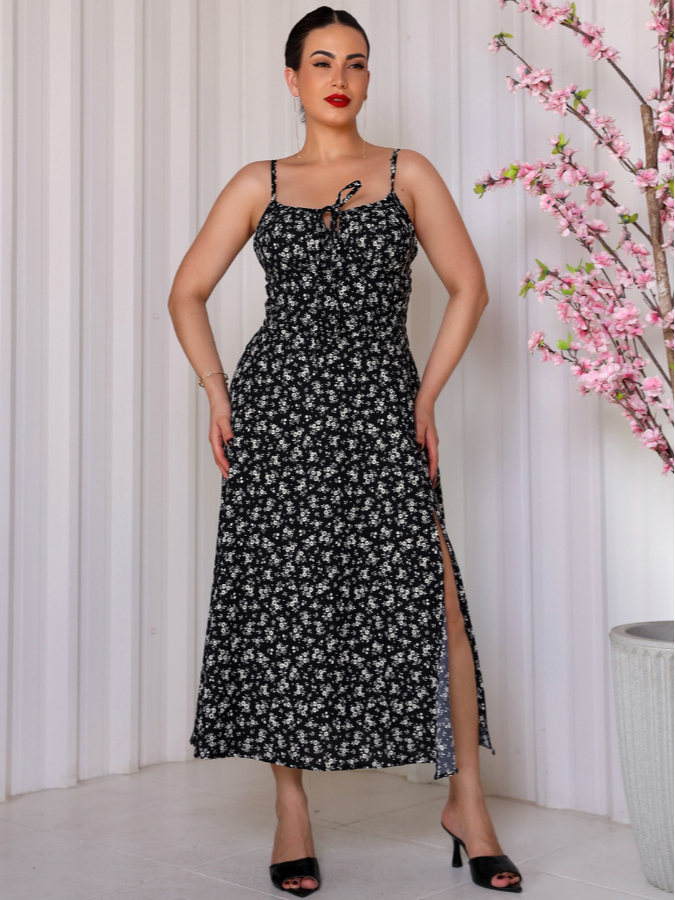 Vestido Midi Floral Romântico Feminino Floral Com Fenda Lateral tem Bojo e Forro Tendencia