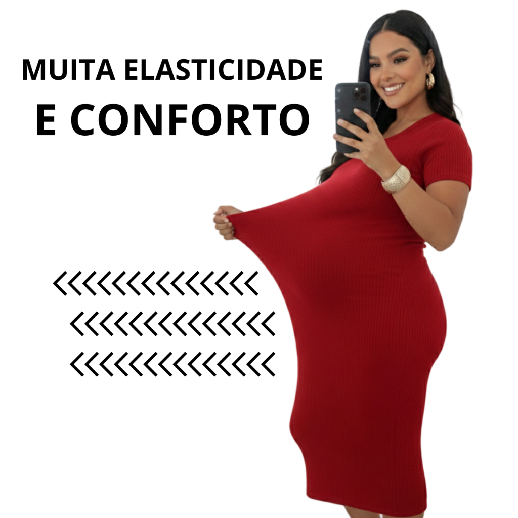 Vestido Midi Gestante Grávida Maternidade Confortável Canelado Manga Manguinha Moderno Social