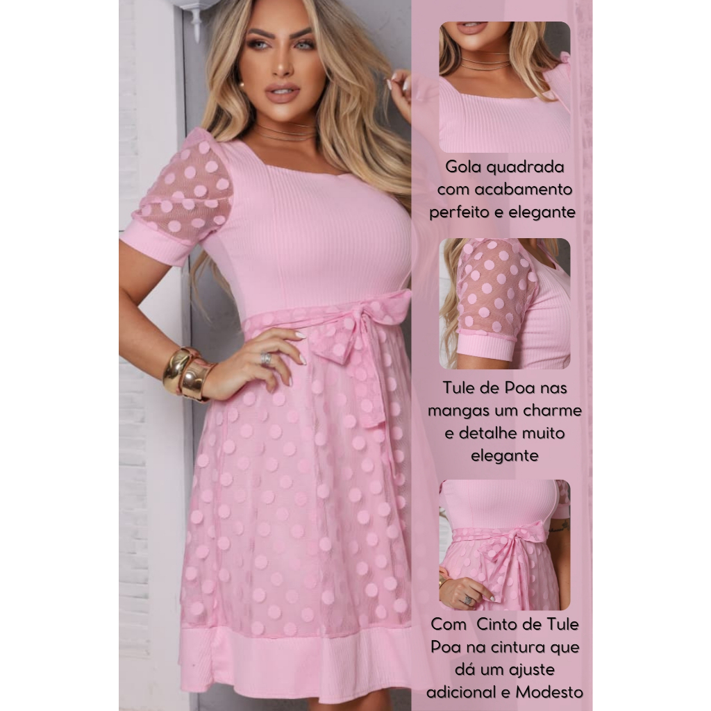 Vestido Feminino Midi em Malha Canelada com Tule de Poá e Cinto Faixa Elegância e charme em um só look! Vestido Evangélico Feminino confeccionado em malha canelada de alta qualidade, este vestido midi traz conforto e caimento impecável. Possui sobreposição de tule com estampa poá que adiciona um toque romântico e sofisticado. As mangas curtas levemente bufantes e o cinto faixa do mesmo tecido valorizam a silhueta. Ideal para eventos, passeios e ocasiões especiais, garantindo um visual delicado e moderno. ✨ DETALHES DO PRODUTO : Material: Malha canelada com sobreposição em tule poá Comprimento: Midi Mangas curtas bufantes em tule Cinto faixa em tule removível Saia levemente rodada com barra em malha canelada Confortável e elegante 📌 Ocasiões indicadas: Cultos, encontros, passeios, festas, eventos sociais e uso casual elegante. MEDIDAS : M VESTE 38 AO 40 BUSTO 80 - 85 cm CINTURA 72 - 76 cm QUADRIL 130 - 138 cm OMBRO 72 - 76 cm MANGA 28 / 29 cm COMPRIMENTO DESDE O OMBRO 100 - 105 cm G VESTE 42 BUSTO 84 - 90 cm CINTURA 80 - 84 cm QUADRIL 136 - 142 cm OMBRO 76 - 80 cm MANGA 28 / 29 cm COMPRIMENTO DESDE O OMBRO 100 - 105 cm GG VESTE 44 / 46 BUSTO 96 - 101 cm CINTURA 90 - 98 cm QUADRIL 156 - 162 cm OMBRO 84 - 89 cm MANGA 28 / 29 cm COMPRIMENTO DESDE O OMBRO 100 - 105 cm EVENTUAIS DUVIDAS NOS CHAME AQUI NO CHAT DA SHOPEE E TEREMOS O PRAZER EM LHES ATENDER ! vestido midi feminino, vestido malha canelada, vestido tule poá, vestido com cinto, vestido elegante para festas, vestido midi poá, vestido feminino elegante, vestido romântico, vestido com cinto, vestido para festa, vestido para culto, vestido malha canelada.
