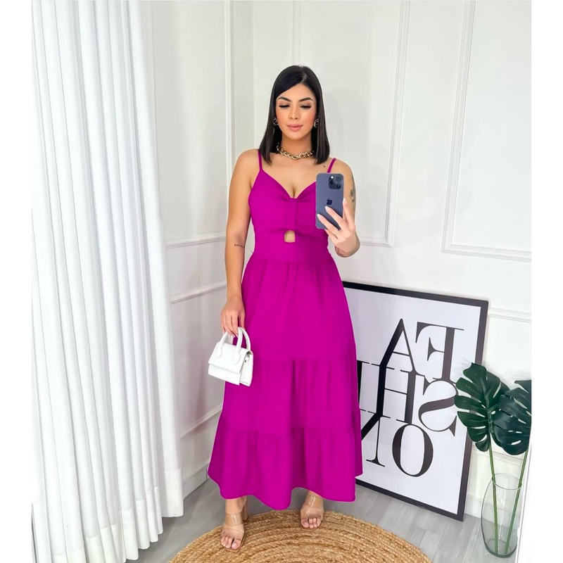 Vestido Mídi Longo Feminino Ajustável na Alcinha com Bojo