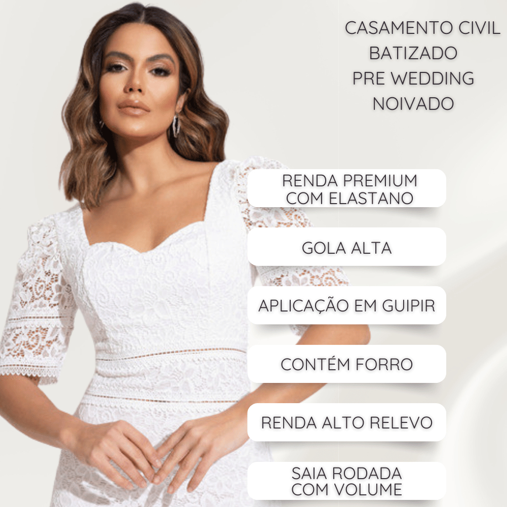 Vestido Midi Noiva Moda Evangelica Casamento Civil Off White