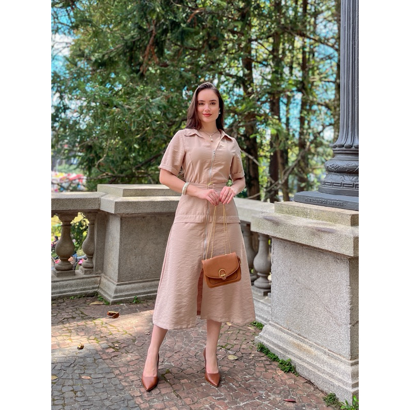 Vestido Mídi Novo com siper moda feminina cristão