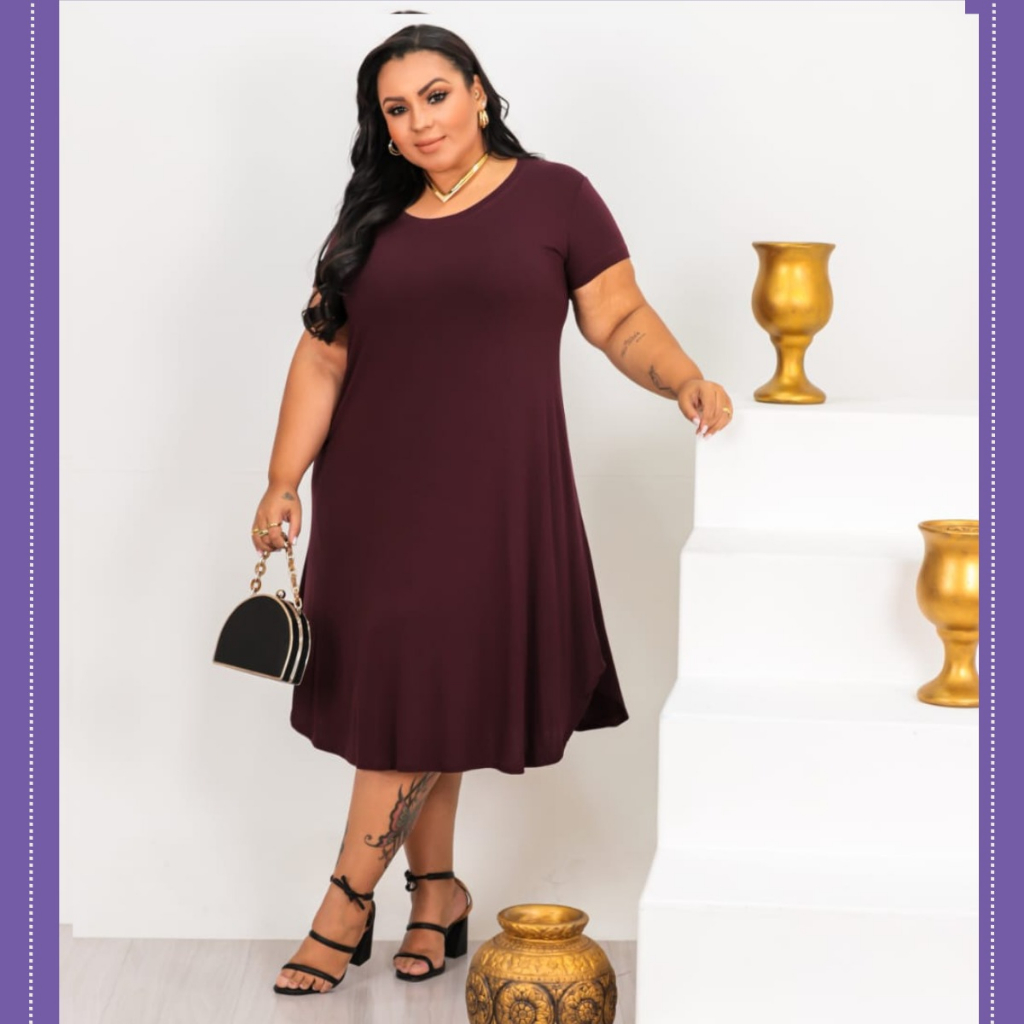 VESTIDO MIDI PLUS SIZE COM MANGUINHA