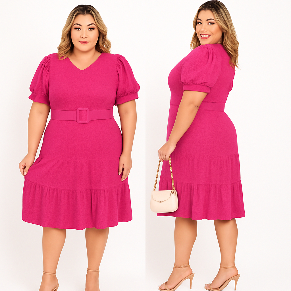 Vestido Midi Plus Size Forrado Laise Moda Evangélica