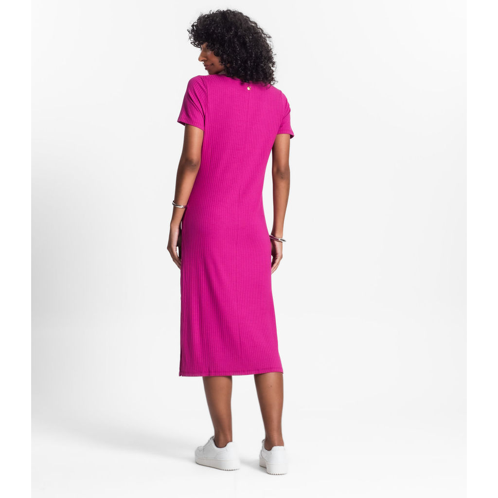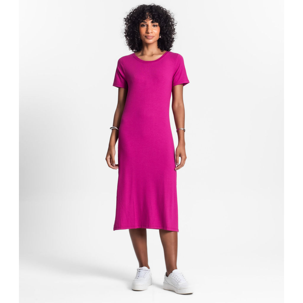 Vestido Midi Ribana Canelada Básico Rovitex Roxo