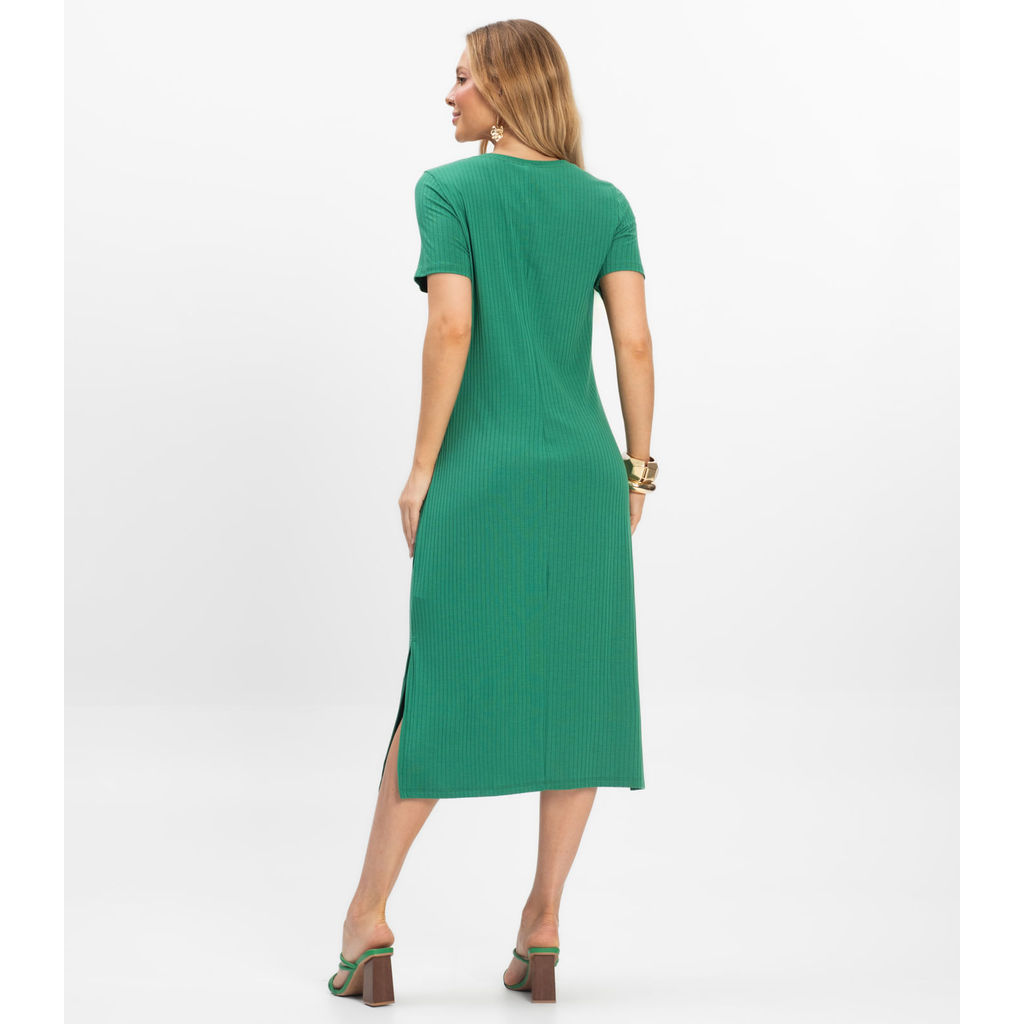 Vestido Midi Ribana Canelada Básico Rovitex Verde