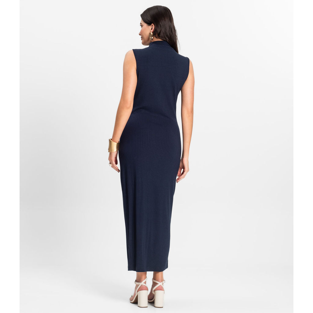 Vestido Midi confeccionado em Ribana Canelada, com modelagem reta e confortável. Possui gola chaminé com acabamento limpo, cavas reforçadas com friso e etiqueta interna discreta. A peça tem barra com costura dupla para maior durabilidade. Ideal para um visual moderno e descomplicado, pode ser usado em diferentes ocasiões com muito estilo e praticidade.