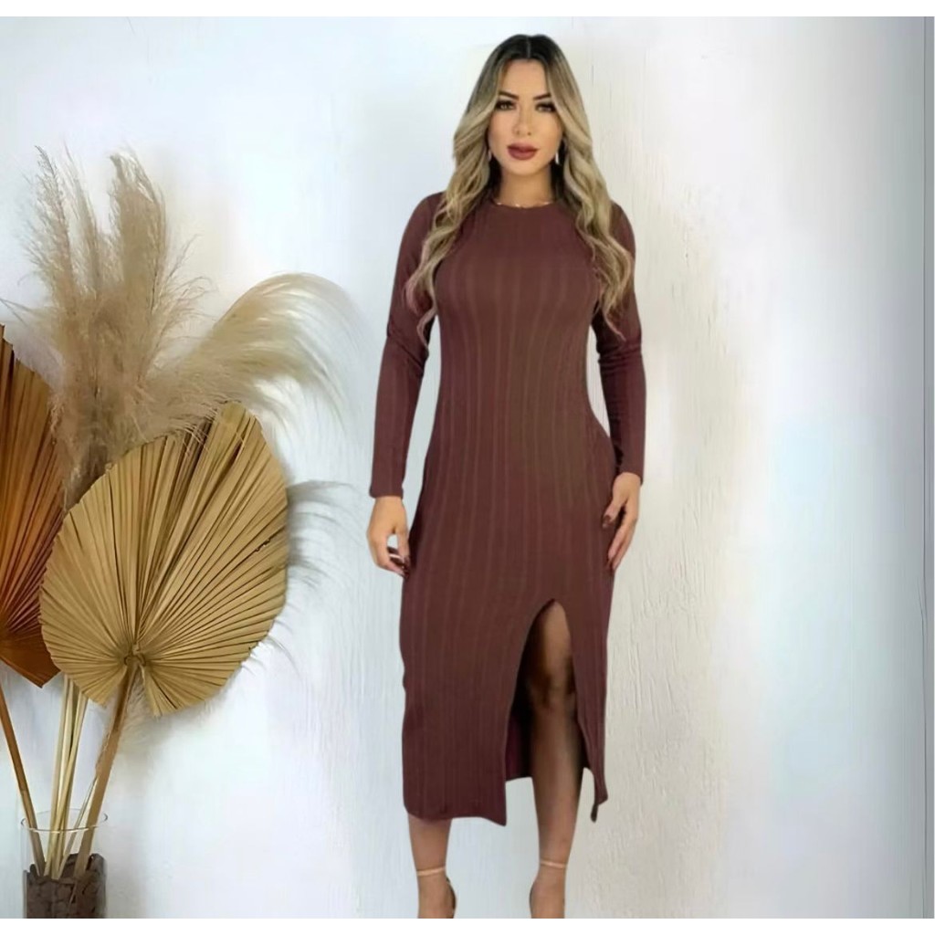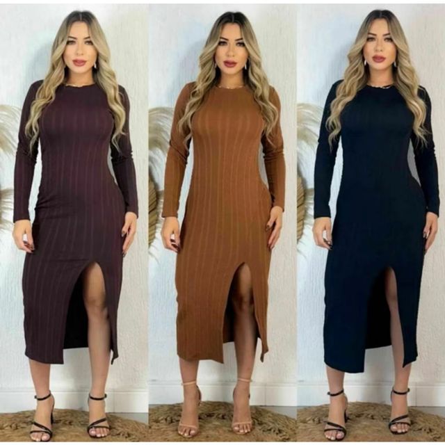 Seja Bem vindo(a) Pameloadias_store Vestido longo midi tubinho manga longa com fenda lateral Òtimo p dias de frio Tecido: Ribana Composição: 96%Poliester 04%Elastano Tamanho: P/M/G/GG