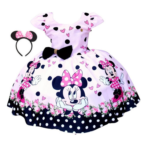 Vestido Minnie Infantil E Juvenil Princesa Com Tiara De Orelhinha