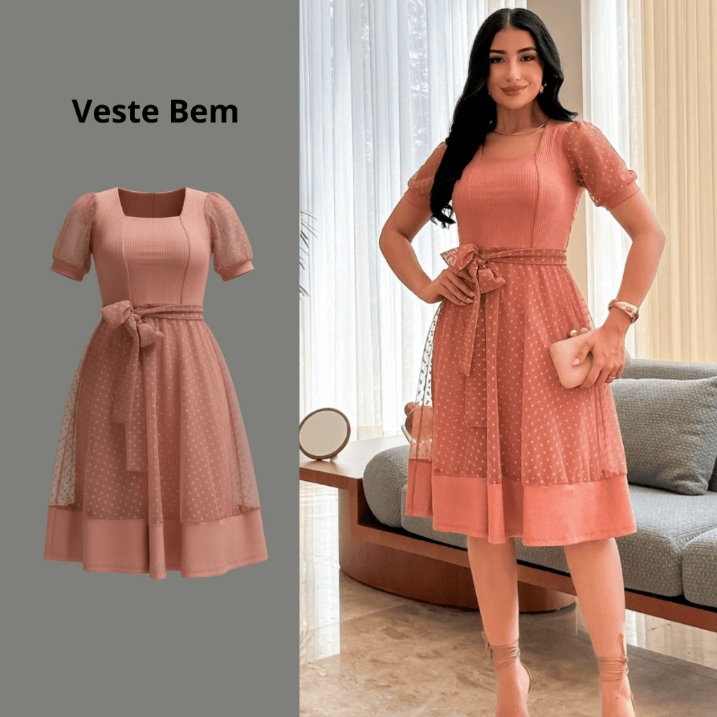 🛍️ VESTIDO EM MALHA CANELADA COM TULE – CONFORTO, SEGURANÇA E CAIMENTO REAL ✔️ Não marca o corpo (malha encorpada) ✔️ Não é transparente ✔️ Modelagem confortável, que se ajusta ao corpo sem apertar ✔️ Ideal para uso diário e ocasiões especiais Este vestido foi desenvolvido para oferecer conforto prolongado, liberdade de movimento e um visual elegante. A malha canelada garante sustentação e elasticidade, enquanto o tule traz leveza e sofisticação ao look. Acompanha faixa para amarração na cintura, permitindo ajuste personalizado e valorizando a silhueta. Perfeito para culto, trabalho, eventos, reuniões e uso diário. 🔹 INFORMAÇÕES DO PRODUTO Tecido: Malha canelada encorpada + tule Elasticidade: Sim Acessório: Faixa para amarrar na cintura (inclusa) Caimento: Confortável, veste bem diferentes tipos de corpo Bojo: Não contém Referência: A modelo veste tamanho M 📏 TABELA DE MEDIDAS (MEDIDAS REAIS DO PRODUTO) 📏 Tamanho M Veste 38/42 Comprimento: 102 cm Cintura: 68 a 80 cm Busto: 90 cm 📏 Tamanho G Veste 44/46 Comprimento: 106 cm Cintura: 80 a 88 cm Busto: 110 cm 📏 Tamanho GG Veste 46/50 Comprimento: 110 cm Cintura: 88 a 105 cm Busto: 124 cm ➡️ A malha possui elasticidade, facilitando o ajuste ao corpo. ⚠️ ATENÇÃO Para compras em quantidade (fardamento), entre em contato conosco antes de finalizar o pedido. Produto de fabricação própria e produção artesanal. Podem ocorrer pequenas variações de tonalidade conforme o lote do tecido. ❗ IMPORTANTE Após a finalização do pedido, não será possível alterar: Tamanho Modelo Cor Endereço de entrega ➡️ Confira atentamente a tabela de medidas antes de concluir a compra. 🧵 Trabalhamos com qualidade, ótimo acabamento e fidelidade ao modelo apresentado nas fotos. 💬 DÚVIDAS? Fale com a gente pelo chat da Shopee. Atendimento rápido e pronto para te ajudar a escolher o tamanho ideal.