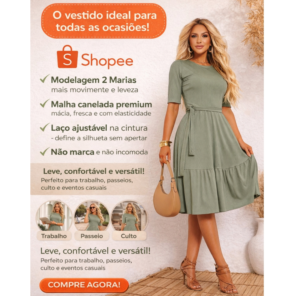 VESTIDO FEMININO 2 MARIAS MALHA CANELADA 💖 O vestido que une CONFORTO, ELEGÂNCIA e PRATICIDADE no seu dia a dia! Se você procura um vestido bonito, confortável e fácil de usar, acabou de encontrar! O Vestido Feminino 2 Marias em Malha Canelada foi pensado para valorizar o corpo sem marcar, trazendo um visual feminino, moderno e extremamente versátil. ✨ Vista e sinta a diferença no primeiro uso! 👗 POR QUE VOCÊ VAI AMAR ESSE VESTIDO? ✔ Modelagem 2 Marias – mais movimento e leveza ✔ Malha canelada premium – macia, fresca e com elasticidade ✔ Laço ajustável na cintura – define a silhueta sem apertar ✔ Não marca e não incomoda ✔ Ideal para trabalho, passeio, culto, eventos casuais e dia a dia Um vestido só, várias ocasiões! CAIMENTO PERFEITO PARA TODOS OS ESTILOS O corte foi desenvolvido para oferecer conforto real, vestindo muito bem diferentes tipos de corpo. É aquela peça que você coloca e já se sente bem vestida, sem esforço. 🎨 DISPONÍVEL EM DIVERSAS CORES Escolha sua cor favorita (ou leve mais de uma USANDO O CARRINHO DE COMPRAS 😉) e monte looks incríveis com sandália, tênis ou salto. ⚠️ ATENÇÃO: As cores mais vendidas acabam rápido! 👉 Garanta a sua antes que esgote. DETALHES DO PRODUTO: Modelo: Vestido Feminino 2 Marias Tecido: Malha Canelada Comprimento: Midi Manga: Curta Bufante Cintura: Com laço para amarração Estilo: Casual, elegante e confortável TABELA DE MEDIDAS DO VESTIDO RODADO MALHA CANELADA: M veste 38 ao 42 BUSTO 88 - 96 CINTURA 76 - 82 QUADRIL 116 - 124 GG veste 44 BUSTO 94 - 102 CINTURA 86 - 94 QUADRIL 126 - 136 COMPRIMENTO DA PEÇA Do ombro áte a barra do vestido 107 a 110 CM COMPRIMENTO DAS MANGAS M 16 COMPRIMENTO / 26 DIAMETRO GG 16 COMPRIMENTO / 30 DIAMETRO ⭐ POR QUE COMPRAR AGORA? ✔ Produto com alta saída ✔ Excelente custo-benefício ✔ Peça versátil para todas as estações ✔ Ótima opção para uso próprio ou revenda 🛒 Clique em comprar agora e receba um vestido que você vai querer usar sempre! Caso tenha dúvidas temos o chat dispoinivel pronto para lhes atender ! vestido feminino, vestido 2 marias, vestido midi, vestido malha canelada, vestido com laço, vestido casual feminino, vestido elegante, vestido confortável, vestido para o dia a dia, moda feminina