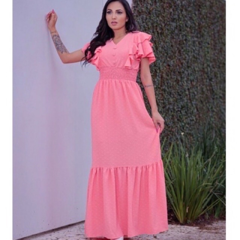 Vestido Longo Feminino – Delicadeza, Estilo e um Toque de Romance Se encante com cada detalhe deste vestido longo em tecido Duna Pipoca, uma peça que une elegância, conforto e feminilidade em um só look. ✨ Destaques da peça: Confeccionado em tecido Duna conhecido por seu toque macio, textura sofisticada e caimento perfeito. Forrado, oferecendo mais segurança e conforto ao vestir. Delicado babado nas mangas e botões frontais decorativos, que trazem charme e movimento à peça. Tamanho único, com modelagem versátil que veste do 38 ao 48 com elegância. 📏 Medidas Aproximadas: Busto: 84 cm (estica até 110 cm) Cintura: 68 cm (estica até 80 cm) Quadril: até 116 cm Comprimento: aproximadamente 150 cm (ombro à barra) 💖 Uma peça feita para mulheres que amam se sentir lindas, confiantes e confortáveis – ideal para ocasiões especiais ou para transformar o dia a dia com um toque de romantismo. Vista-se de encantamento... Você vai se apaixonar! ✨..Tecido gelado excelente caimento